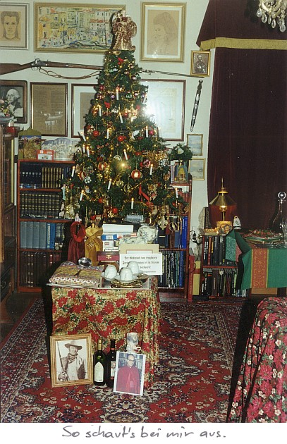 Nothing says Christmas Day like bottles of alcohol and a photo of John Wayne.