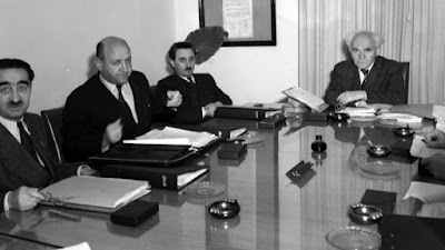A cabinet meeting with Prime Minister David Ben-Gurion and Foreign Minister Moshe Sharett, 1949.