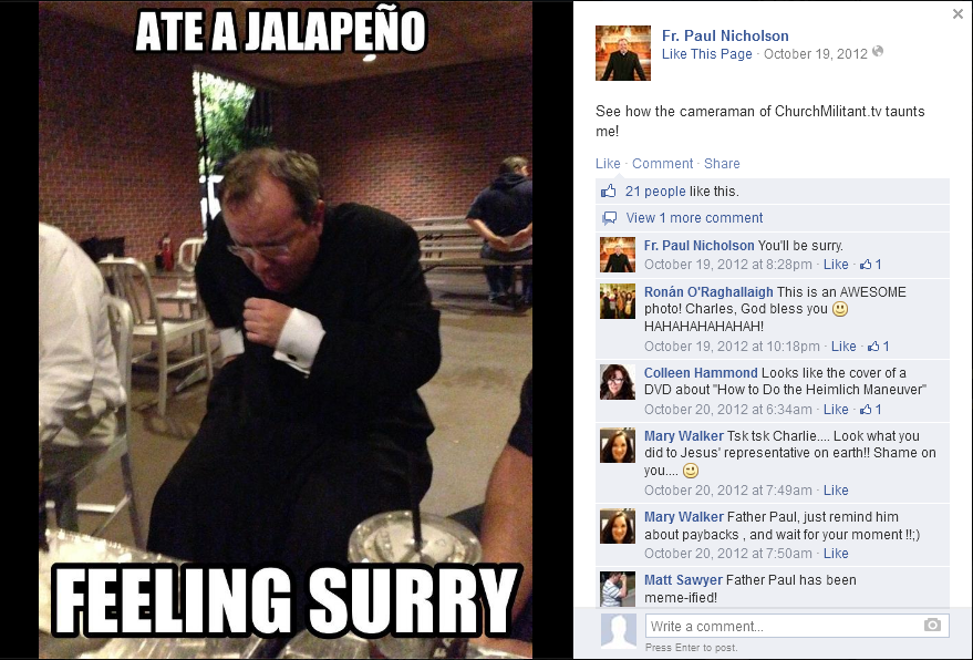 In mid-2013, I spent several days at the Church Militant.tv studios filming a 13 part series on Vatican II, and I saw quite a bit of Fr. Nicholson when I was there.