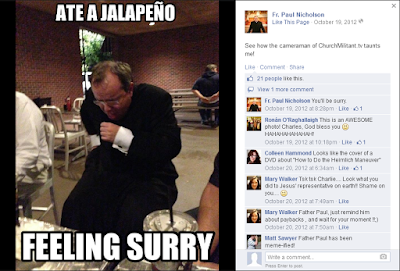 We are certain that Nicholson will declare us ananthema and doomed to hell. Perhaps before he does this he could first take the time to point out to his spiritual charge, Michael Voris that he is teaching heresy in a video in which he says heretics are not members of the Church. You can't make stuff like this up.