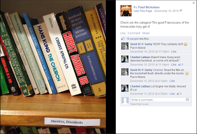 Nicholson wants Francis to declare a 5th Dogma! Wonder where he got that idea? Why from the Franciscan Friars of the Immaculate. We thought Paul was loyal to Francis? So why isn't he bad mouthing the FFI like other 'traditional' groups? Maybe because they are cool and skateboard?