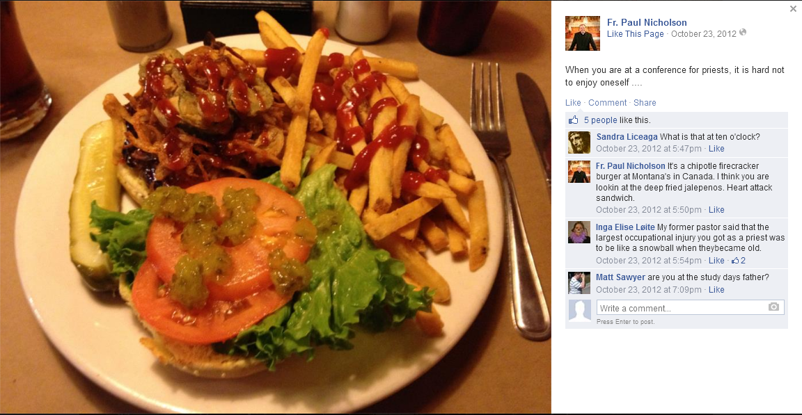 Nothing says he is a cracker jack prelate like a photo of his food.