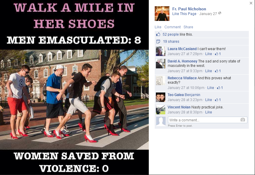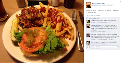 Fr. Paul Nicholson for those readers of Call Me Jorge... who don't know him, is a presbyter who is a card carrying member of The Priestly Society of the Holy Cross which is connected to The Prelature of the Holy Cross and Opus Dei (Praelatura Sanctae Crucis et Operis Dei). In other words he is intrinsically united with Opus Dei but is under his local Bishop's jurisdiction. He is well-known for being tactless as can been seen from this picture (shown below) which he posted to his facebook page and his blog two Ash Wednesdays past.