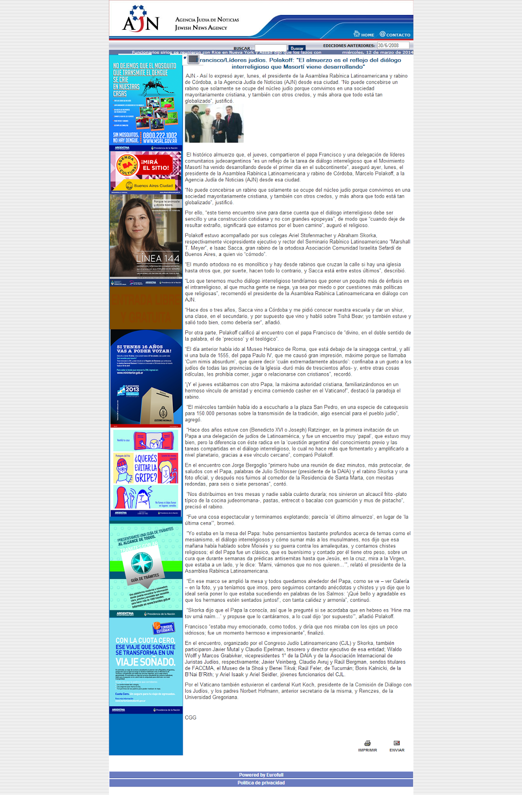 Below are screen shots of the article quoted from at the beginning of this blog entry. The story appeared in Agencia Judia de Noticias and Itol Gadol. Clicking on the entries underneath the screenshots of the webpage will take one to the original websites.