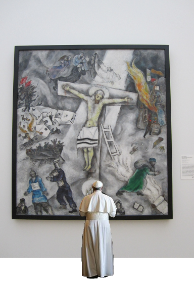 ..."In this painting, Jesus is at the center of some of the most horrific suffering Chagall can imagine," she said. "And he is not just among the suffering, but truly identified as one of the suffering."